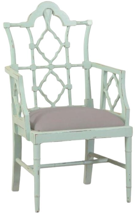 Open and inviting, the detailed back and arms of the Chinois Armchair offer intricacy and character to a dining are or sitting room. From the Chinois collection, this chair delivers solid mahogany with a wonderfully cushioned seat. This piece is offered with a vast array of finish to create a truly custom design.Read More