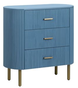 Make a color statement without sacrificing storage. Wrapped in ribbed panels and finished in rich denim blue, this three-drawer chest offers stealth organization on airy brass legs - perfect for entry catch-all, bedside books or cocktail napkins.Read More