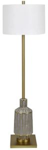 The Crestview collection Caldwell floor lamp showcases striking contrasts with its matte glaze intersected by bold metallic gold accents. The oversized brushed brass base adds visual interest, while the exaggerated components and white linen shade complete the design, making it a standout piece for any modern or transitional decor.Read More