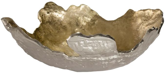 The Crestview Collection Suri Sculpted Bowl is crafted from aluminum. The inside of the bowl is a shiny brass finish, while the outside is a darker bronze finish. This bowl will add dimension to any table you place it on and its deep curve will be ideal for displaying fresh fruits or nuts.Read More