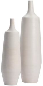 The Crestview Collection Tegan Vase comes in a set of two in different sizes, both having the same white finish. The vases are finely ribbed from top to bottom. Each rib is the same size as the next giving it an almost smooth appearance from far away and a pleasing symmetrical look close up.Read More