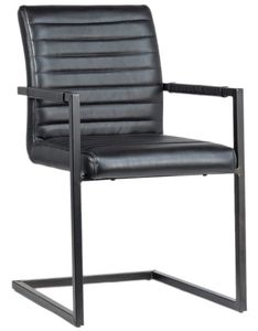 Clean and sophisticated, this dining chair brings a modern yet timeless design to your living space. Upholstered in lustrous, genuine black leather sitting atop a black matte iron frame. The metal frame offers a simple modern design and built-in armrests for support.Read More