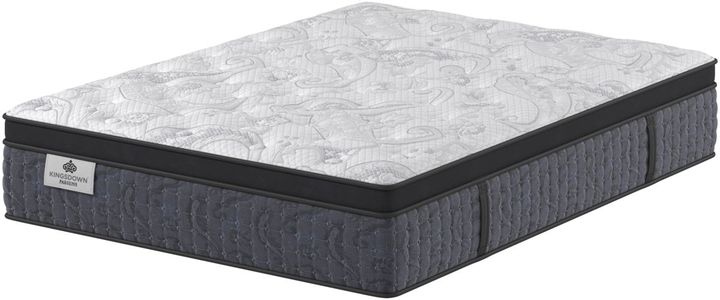 The Kingsdown Passions Caison Firm Euro offers a European pillowtop cover with a fully gusseted layer of comfort topped by a luxury cover and silk and wool fibers just beneath the surface. Its exceptionally high coil count and distinctive wrapped coil unit will deliver durable support and comfort night after night. Each handmade mattress is designed with your high quality sleep in mind.Read More