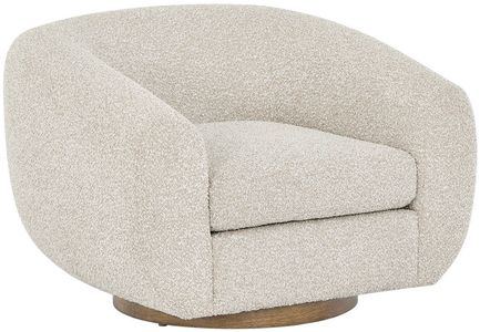 The fitz swivel chair features a sleek, modern silhouette upholstered in Santa Cruz sand fabric, a soft 100% polyester in a warm neutral tone. Its smooth swivel base and medium brown oak leg finish create a refined look, perfect for stylish living rooms or sophisticated lounge spaces.Read More