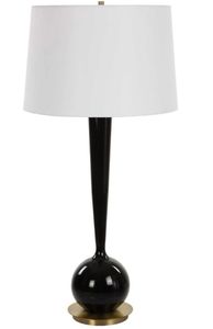A nod to 1960's Mod design, the Brielle Table Lamp features a modern ceramic silhouette finished in a polished black glaze that's accented with plated brushed brass details. The slightly tapered round hardback shade is covered in a crisp white linen fabric.Read More