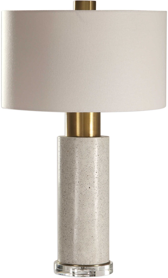 Polished surface finished in a bleached wash, accented with a thick crystal foot, and brushed brass plated details