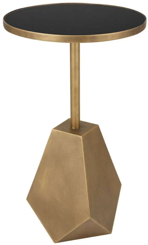 With a whimsical geometric accent, this table features a multi-faceted iron base finished in antique bronze, with a sleek black glass top. Make a bold statement by incorporating this stunning furniture into your home.Read More