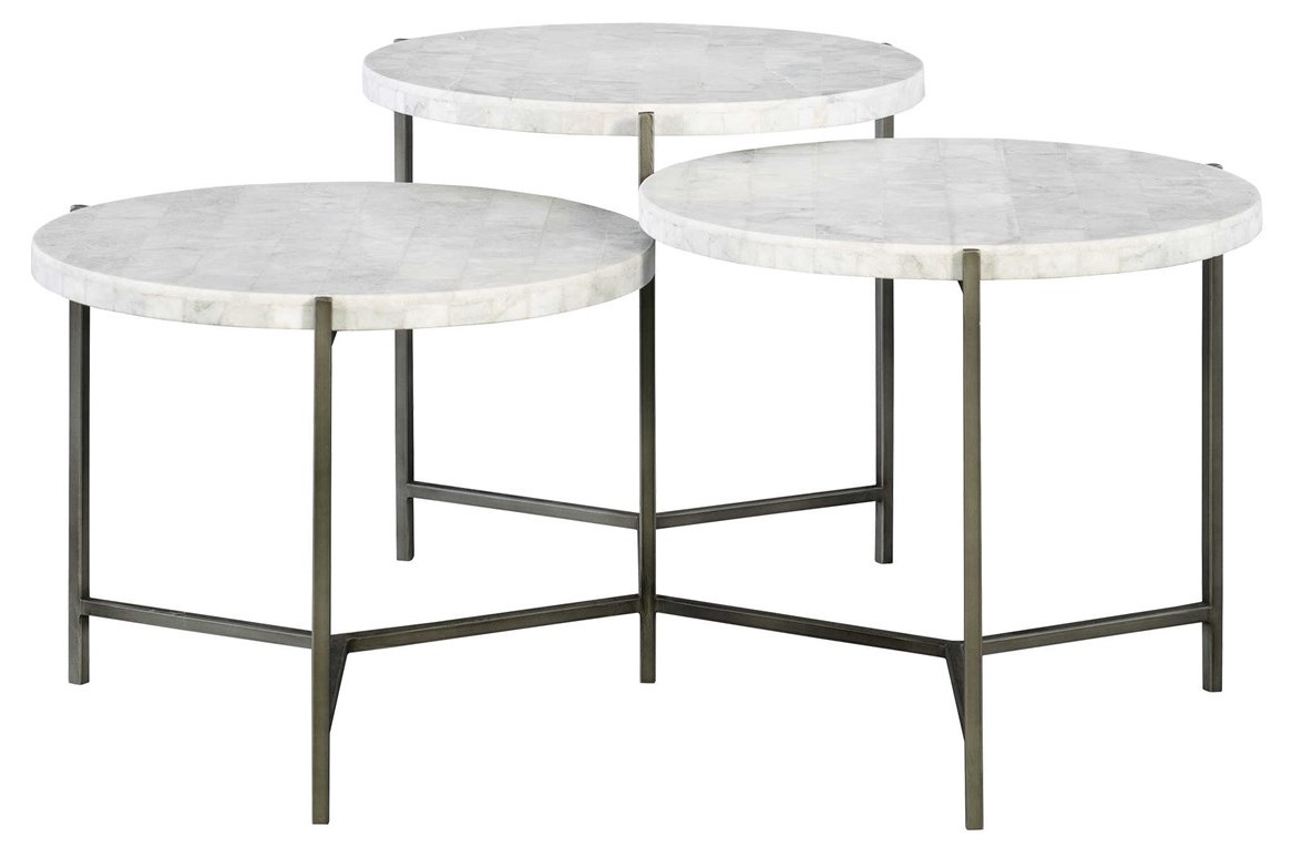 Clean contemporary styling is featured in this tiered coffee table design with white Venetian marble tops, on a forged iron base in a gunmetal finish. This peiece embodies Uttermost’s commitment to quality craftsmanship and timeless style, making it a versatile investment for any home.Read More