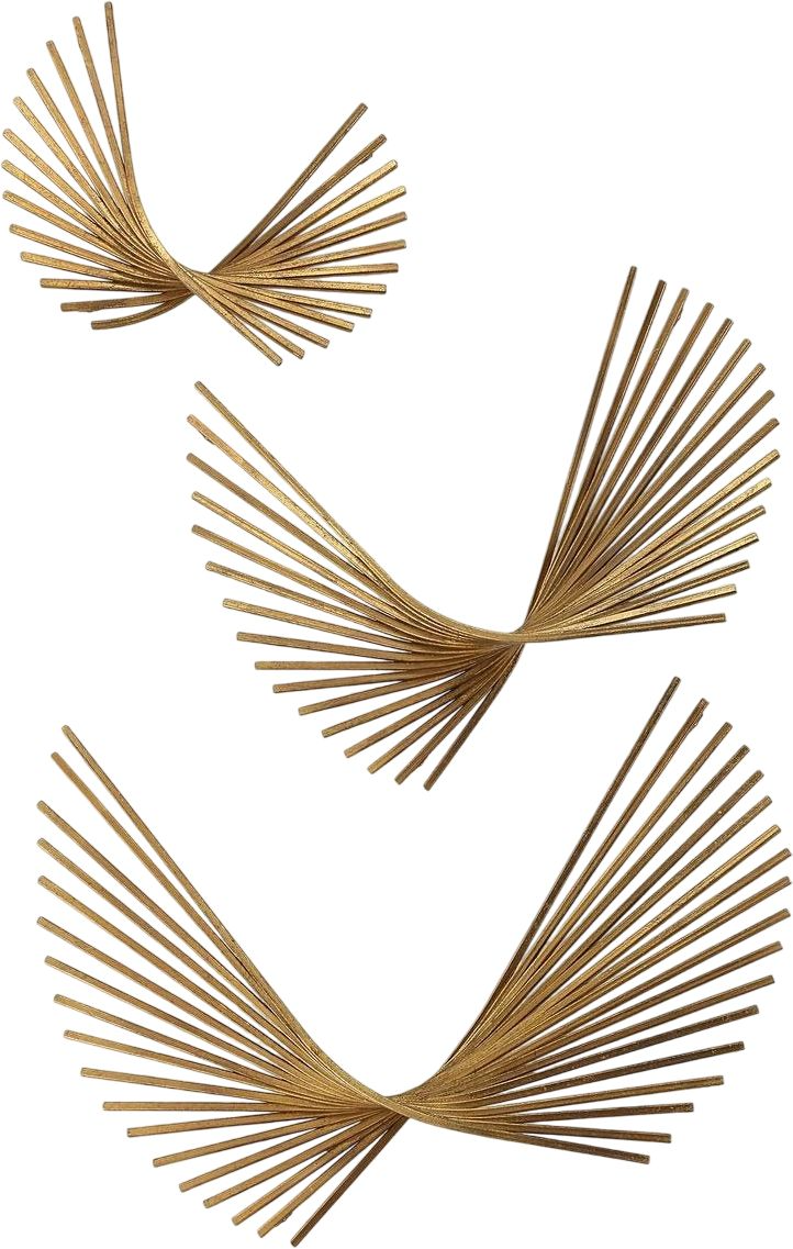 Wisps of three dimensional iron sculptures appear to be floating, giving creative freedom of display. Finished in antique gold leaf wherein crafted from premium materials. May hang in any direction.Read More