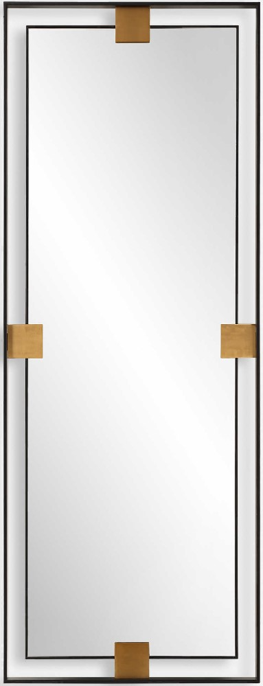 The Cornerstone Mirror, oversized in stature, features plated brushed brass details surrounded by a metal, free-floating boarder finished in a sleek satin black. May be hung horizontal or vertical.Read More