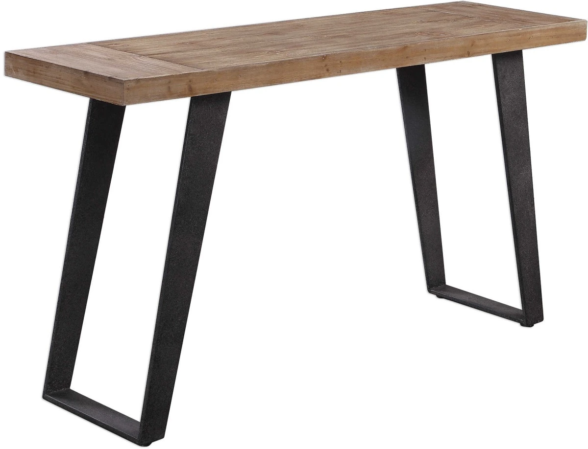 Constructed from natural fir wood, this console table features a weathered oak finished top showcasing the natural wood grain, supported with industrial metal legs finished in a textured, aged black finish.Read More