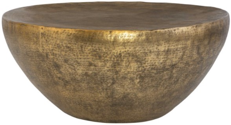 Designed to be placed in a sitting area for convenient support of beverages, remote controls, magazines, and books. A centerpiece that gleams, the Gilded Dome coffee table features beautifully hammered aluminum finished in antique gold.Read More