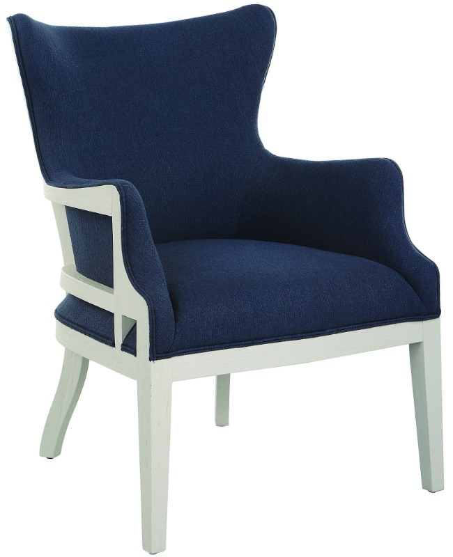 Tightly tailored in a woven regatta blue fabric with a special finish that resists soiling and stains, and is enhanced by the contrast of a refined deconstructed look. The solid wood frame is finished in a clean white with wire-brushed details.Read More