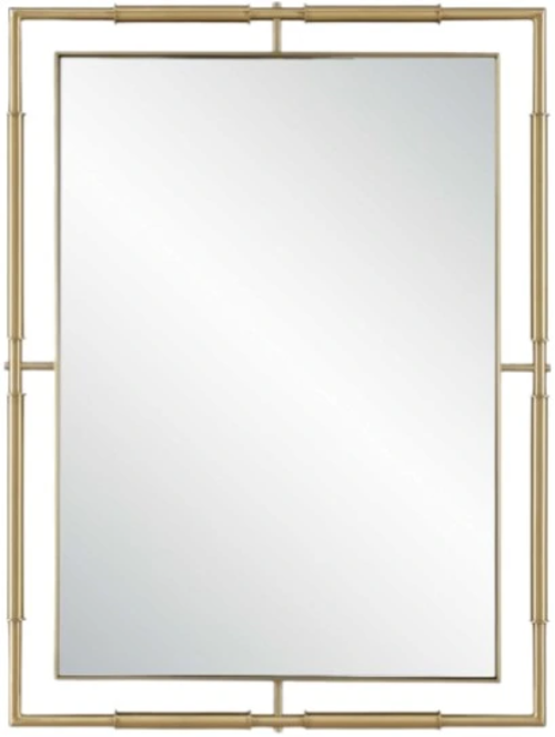 This rectangle stainless-steel frame is finished in a rich plated brass with a suspended outer frame that creates a soft, modern industrial vibe, all surrounding a floating polished edge mirror. May be hung horizontal or vertical.Read More