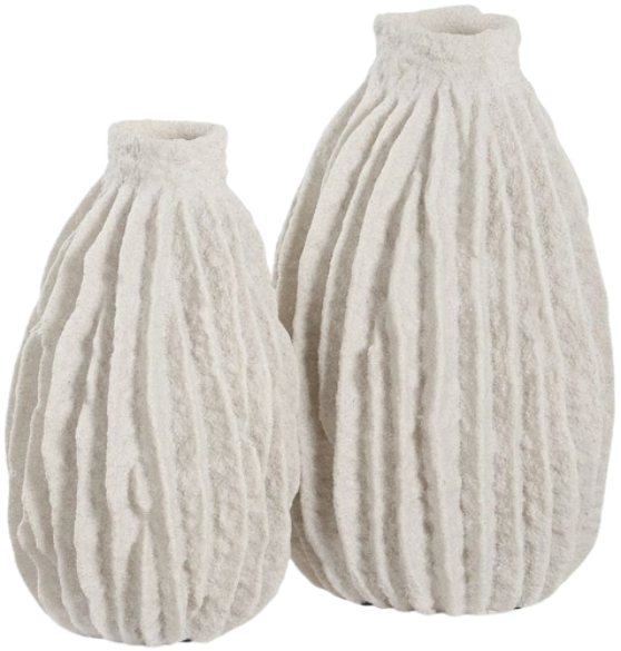 This set of two vases features a stunning textured ivory finish that adds depth and sophistication to any decor. Each vase showcases unique ridges that catch the light beautifully, making them perfect for displaying fresh flowers or as standalone decorative pieces.Read More