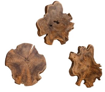 Deeply grained cross sections of natural teak wood with a light honey stain. Panels may be hung or used as tabletop accessories whether indoor or outdoor. Sizes and grain pattern may vary due to the authentic nature.Read More