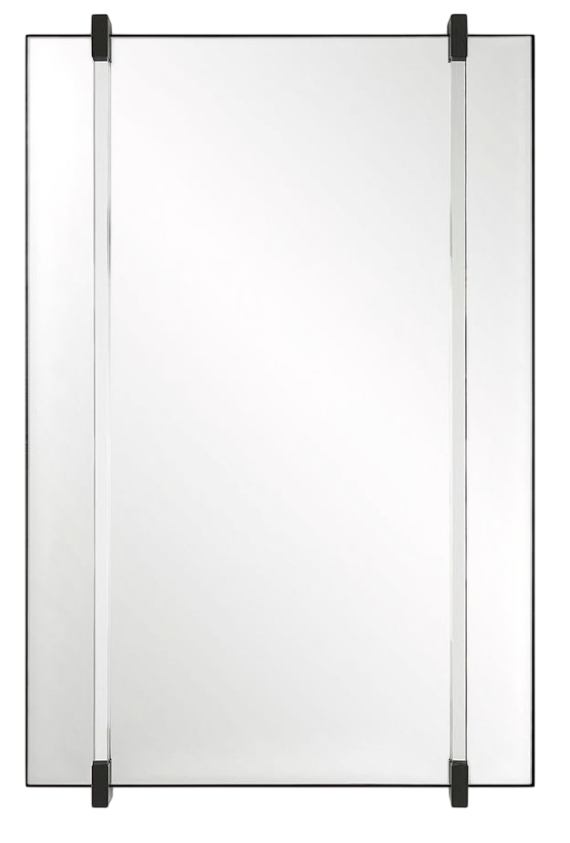 The Ladonna mirror has a matte black iron frame featuring square acrylic rods that are suspended over a floating, polished edge mirror for a dramatic 3-dimensional appeal. May be hung vertical and horizontal.Read More