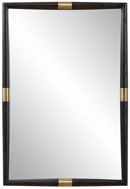 The Uttermost® Larkin Mirror features an elegant antique brass and black metal frame, creating a striking contrast. The Larkin Mirror features a rounded dark oak wood frame accented by sleek plated antique brass cuffs, offering a refined blend of modern and rustic elements. May be hung horizontal or vertical.Read More
