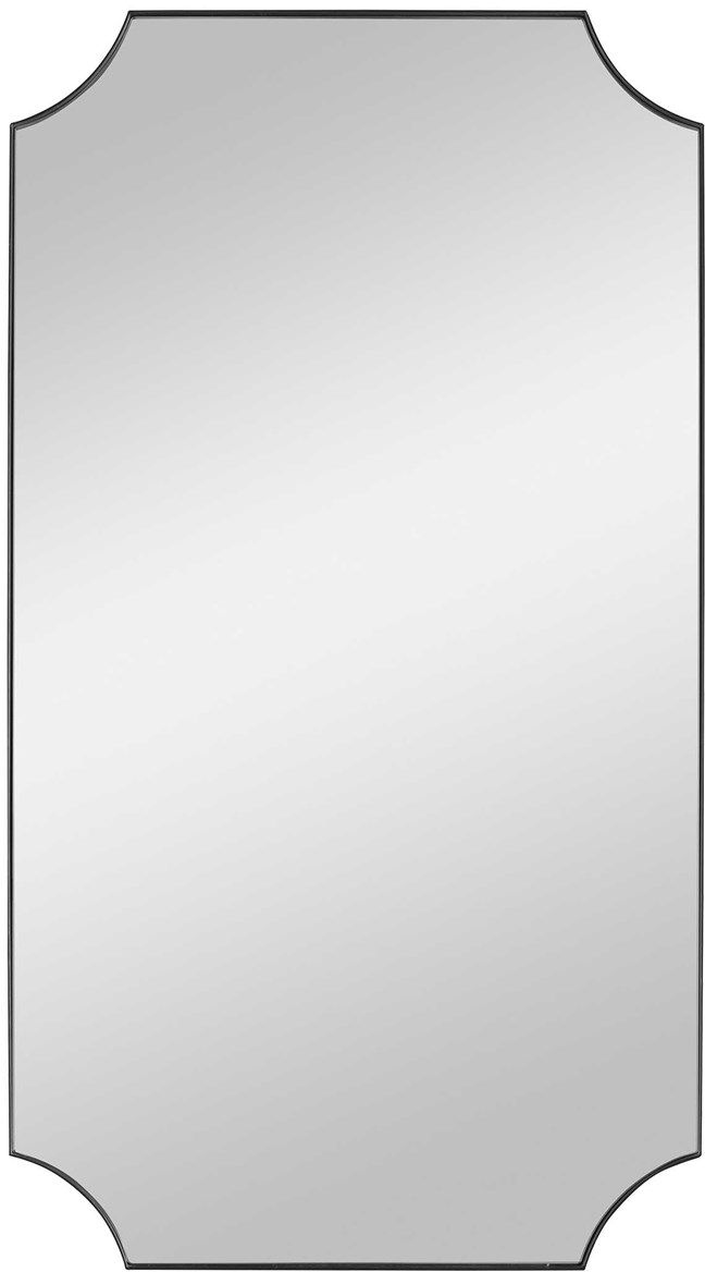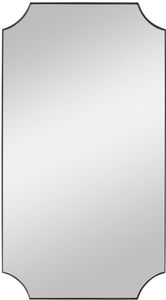 A stylish take on updated traditional style, this mirror features a solid iron frame finished in a sleek satin black with scalloped corner detailing. May be hung horizontal or vertical.Read More