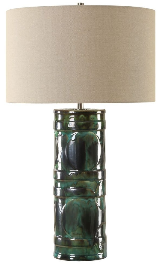 The Loch Table Lamp features a ceramic base, embellished with a peacock green and slate glaze, adding a sense of depth and richness to any space. Light rust accents provide a touch of warmth, while plated brushed nickel hardware adds a contemporary edge.Read More