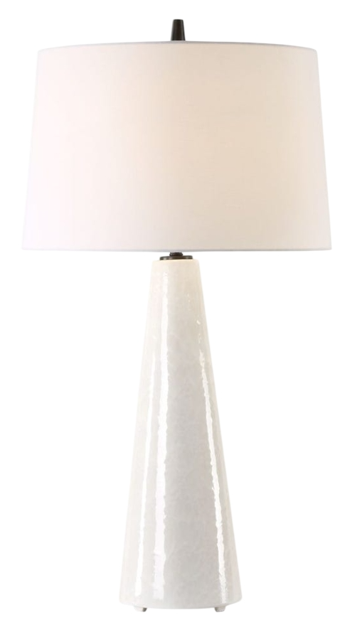 Simple yet versatile, this ceramic table lamp features a cream-ivory drip glaze with subtle texture, accented with matte black details. The lamp is paired with a tapered round hardback shade in a crisp white linen fabric.Read More