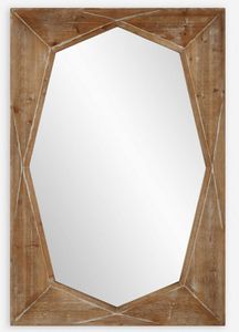 The Marquise Mirror features a diamond shaped profile showcasing a concaved natural wood frame with a subtle light gray wash, adding dimension to the geometric design. May be hung horizontal or vertical.Read More