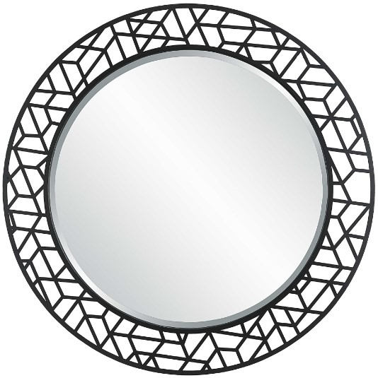The Mosaic mirror displays intricate metalwork for a clean contemporary look finished in satin black. Mirror has a 1 1/4" bevel. It gives subtle elegance in your living room.Read More