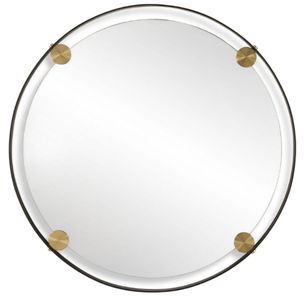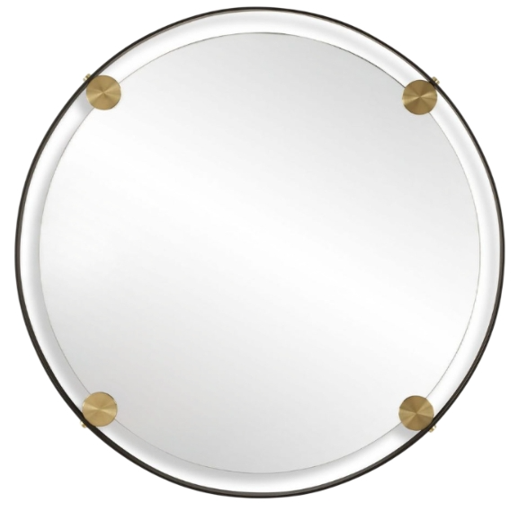 This round mirror features a hefty dark bronze iron frame that exudes contemporary charm, while plated brass medallions add a touch of traditional elegance. Suspended within this exquisite frame is a polished edge mirror, reflecting a blend of sophistication and functionality.Read More