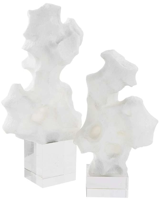 This set of abstract sculptures elevates any modern space and is crafted from white stone atop crystal block bases. Make a bold statement by incorporating this stunning home decor into your home.Read More