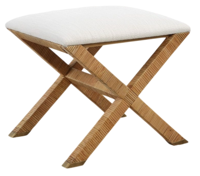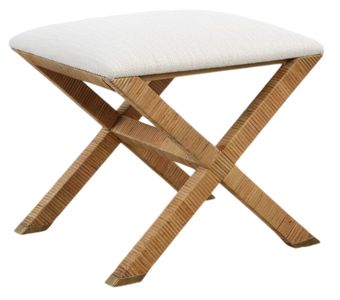 With equal parts polished and casual, the St. Tropez bench has unlimited styling opportunities. The x-base is wrapped in a natural rattan with antique brass foot caps and is complemented by a plush upholstered seat in a crisp textured white polyester.Read More