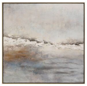 This hand-painted abstract on canvas creates the perfect storm. Featuring both cool shades of gray and blue layered together with warm hues of cream and brown and surrounded by a gold gallery frame. Due to the handcrafted nature of this work, each piece may have subtle differences.Read More