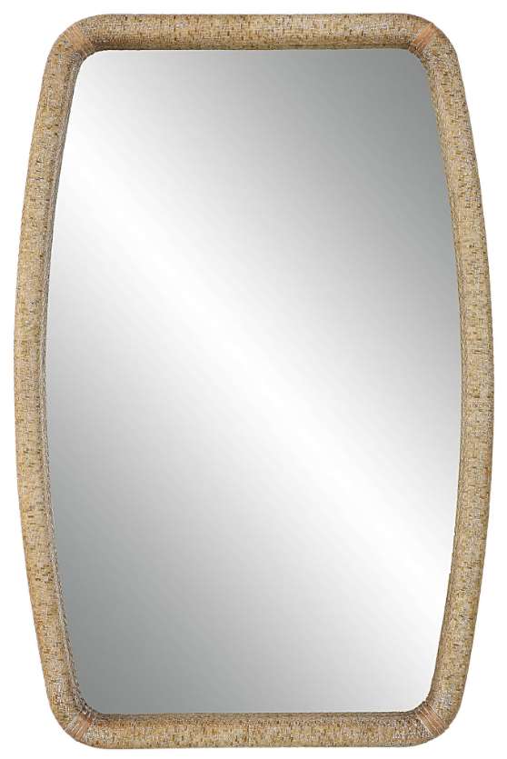 Utilizing natural materials that blend with virtually any style, this mirror features a wooden frame with a wrapped woven rattan design. May be hung horizontally or vertically. Make a bold statement by incorporating this stunning home decor into your home.Read More