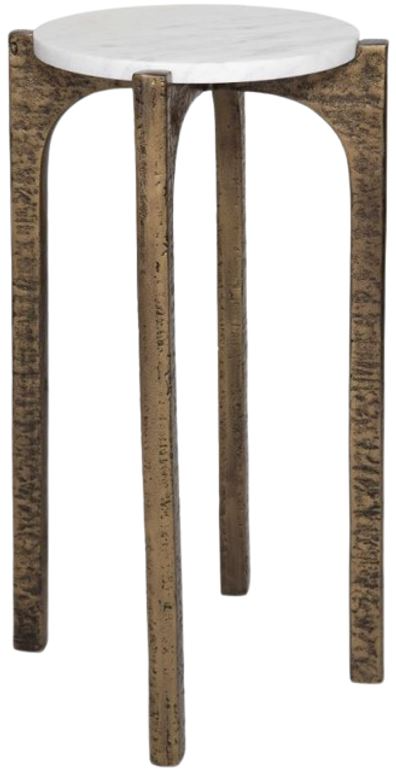Crafted from cast aluminum in an antique brass finish and completed with a natural marble top, Vivi adds elegance to any room. True to the nature of natural materials, each piece will have unique marbling and veining throughout.Read More